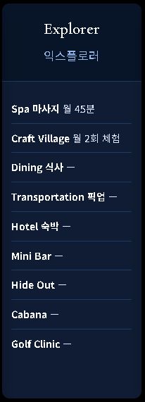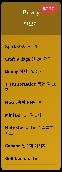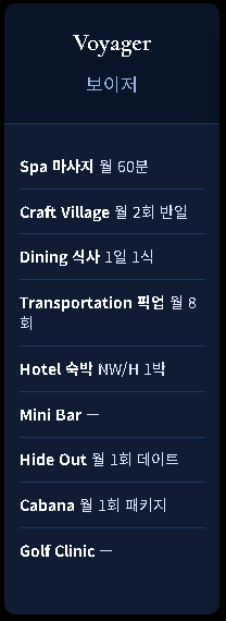 | 등급 | 적립 포인트 | 숙박 | 공항픽업 | 여행 수당 | 게임 크레딧 |